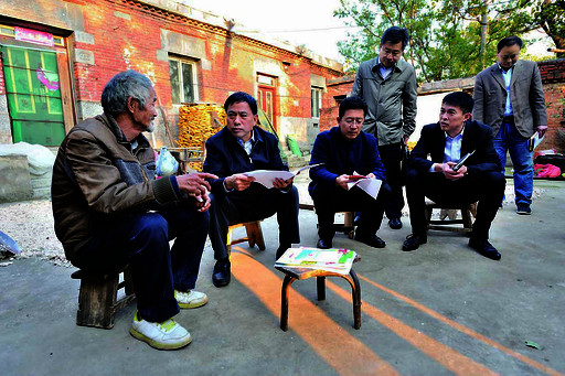 10月30日,市委书记范修芳(左二)来到淇滨区大河涧乡窑洞村,在贫困户郭太志家中与干部群众座谈交流。
