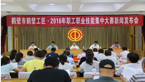 7月14日下午,鹤壁市总工会在市总三楼会议室,举行“鹤壁工匠·2016年职工职业技能大赛”新闻发布会。河南日报、河南广播电台、河南电视台、大河报、东方今报、河南法制报、河南经济报、大河网、法制网(河南频道)、鹤壁日报、鹤壁网、鹤壁广播电视台、鹤壁教育电视台等10多家省市新闻媒体及供电、公安、金融、卫生、通讯等10余家承办职业技能大赛的单位参加了新闻发布会。发布会由市人社局党组成员、副局长邢文涛主持,市总工会党组书记、副主席王英群向前来参加发布会的新闻媒体表示谢意,并作重要讲话。