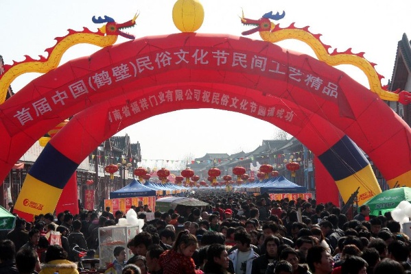 中国鹤壁民俗文化节俗称浚县正月古庙会,始于后赵,至今已有一千六百多年历史,从正月初一至二月初二,历时一个月,吸引了周边省份二十多个县市及海内外游客前来观光、祈福,日游客量最高达五十余万人次,被誉为"华北第一庙会",至今仍完整地保持着明清特色。从2009年起,鹤壁市以弘扬春节文化为主线,以浚县正月古庙会为依托,相继举办了六届中国(鹤壁)民俗文化节,吸引了大批省内外游客。