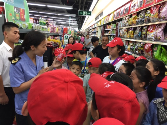 9月16日,淇县食品药品监管局邀请淇河晨报小记者40余人走进裕隆朝歌生活广场进行采访体验。